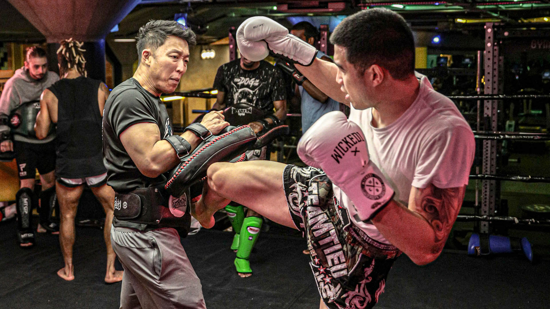 Each session includes pad work, controlled drills, and conditioning exercises designed to improve strength, balance, and coordination.